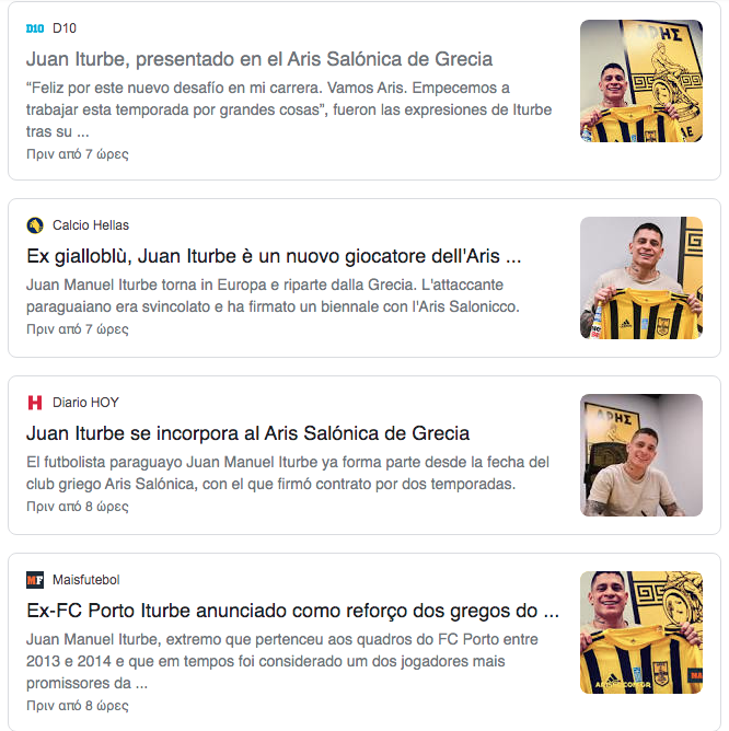 Η μεταγραφή του Χουάν Μανουέλ Ιτούρμπε στον Άρη τράβηξε πάνω της τα φώτα από τα ΜΜΕ της Ευρώπης και της Λατινικής Αμερικής.