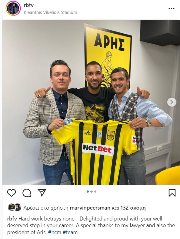 «Η σκληρή δουλειά δεν προδίδει κανέναν. Ευχαριστημένος και περήφανος για το βήμα που άξιζες στην καριέρα σου. Ένα ιδιαίτερο ευχαριστώ στον δικηγόρο μου αλλά και στον πρόεδρο του Άρη».