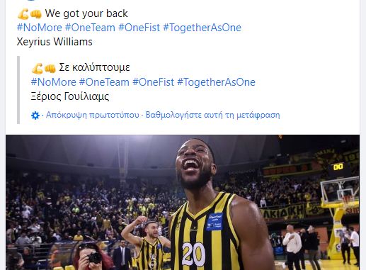 Μετά το… εμετικό μήνυμα που απειλούσε την ζωή του Ζίριους Γουίλιαμς, η ΚΑΕ άμεσα “αντέδρασε” και ενημερώθηκαν οι αστυνομικές αρχές και η δίωξη ηλεκτρονικού εγκλήματος. Το βράδυ της Πέμπτης, η ΚΑΕ, στον επίσημο λογαριασμό της στο facebook, “ανέβασε” μια φωτογραφία του Αμερικανού και που έγραφε “We got your back” (δηλαδή ότι τον καλύπτει σε όσα περνάει), δείχνοντας έτσι την στήριξή της στον Γουίλιαμς.