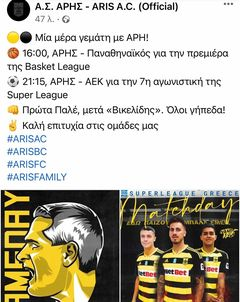 Μήνυμα στήριξης στην ομάδα μπάσκετ αλλά και ποδοσφαίρου των κιτρινόμαυρων οι οποίες αγωνίζονται σήμερα κόντρα σε Παναθηναικό και ΑΕΚ αντίστοιχα έστειλε ο Α.Σ. Άρης μέσω των social media.