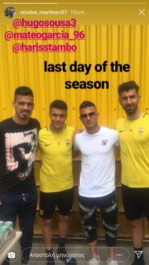 Ο Νίκο Μαρτίνες ανάρτησε φωτογραφία με μερικούς συμπαίκτες του στο μπάρμπεκιου που οργάνωσε η ομάδα μετά την τελευταιά προπόνηση