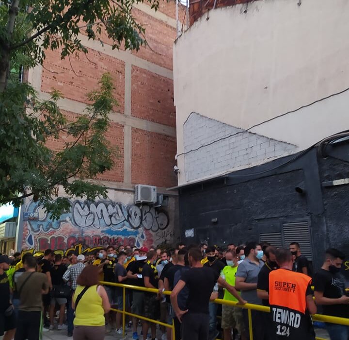 Περισσότερα από δέκα οχήματα της αστυνομίας, δεκάδες αστυνομικοί και κλούβες έξω από το γήπεδο, κάνουν αυστηρούς ελέγχους για τα πιστοποιητικά εισόδου με αποτέλεσμα να σημειωθούν μεγάλες ουρές.