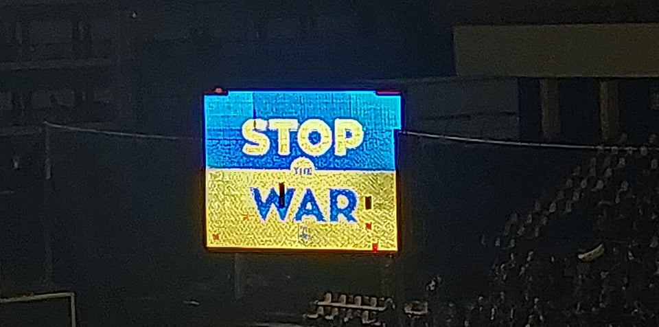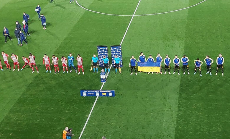 Με σημαία της Ουκρανίας οι παίκτες του Άρη και μήνυμα “Stop the war” στον φωτεινό πίνακα (pic)