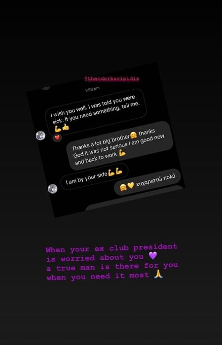 Όπως έγινε γνωστό πριν λίγες ημέρες, ο πρώην φορ του Άρη βρέθηκε θετικός στον κορωνοϊό και φυσικά ο Καρυπιδης έσπευσε να στείλει και διαδικτυακά το δικό του μήνυμα τονίζοντας πως είναι δίπλα του ο, τι και αν χρειαστεί.