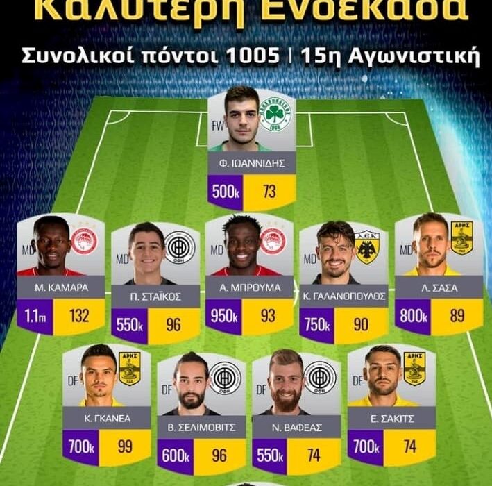 Με τρείς παίχτες του Άρη η καλύτερη εντεκάδα της 15ης αγωνιστηκής