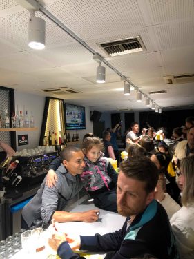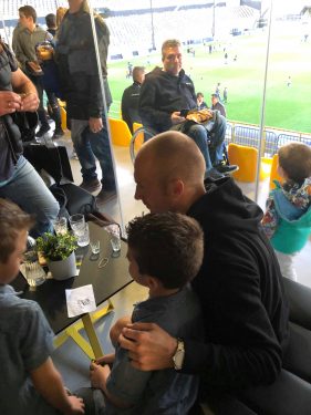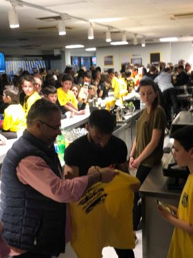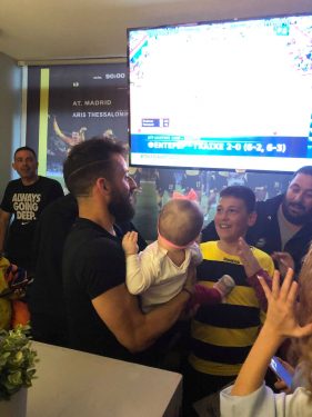 Στο “κιτρινόμαυρο” καφέ βρέθηκαν οι Μανώλης Σιώπης, Νικολάς Ντιγκινί, Γιώργος Δεληζήσης, Λίντσεϊ Ρόουζ, Χουλιάν Κουέστα, Ούγκο Σόουζα, Ντανιέλ Λάρσον, μοίρασαν αυτόγραφα και αγκαλιές, βγήκαν φωτογραφίες και υπέγραψαν δεκάδες μπάλες. Τους δόθηκε έτσι η ευκαιρία να γνωρίσουν από κοντά όλο αυτόν τον κόσμο που τους στηρίζει τόσο καιρό και πραγματικά το χάρηκαν με την καρδιά τους.