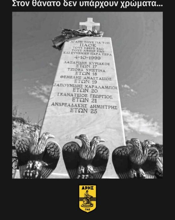 Η ΠΑΕ Άρης, όπως κάθε χρόνο έτσι και φέτος δεν ξεχνάει αυτή την επέτειο, τονίζοντας ότι “μπροστά στον θάνατο δεν υπάρχουν χρώματα”.