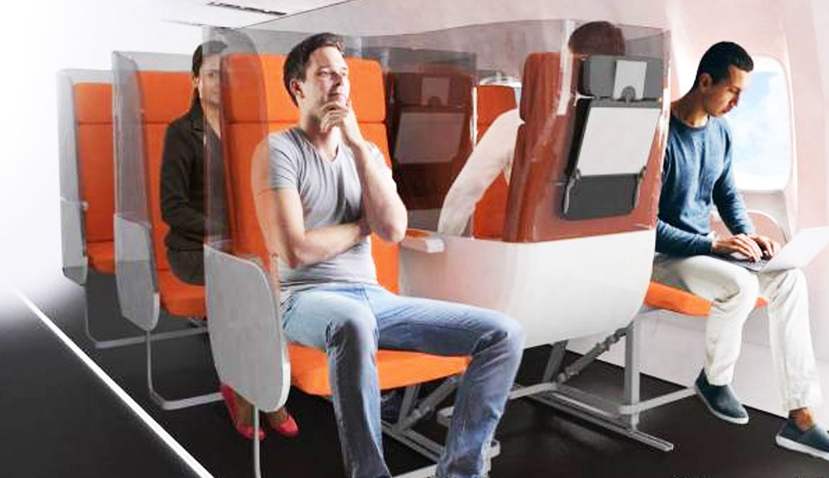 Μέχρι στιγμής καμιά αεροπορική εταιρεία δεν έχει παραγγείλει τέτοια “επίπλωση” για την εποχή συνύπαρξης με τον κορονοϊό στους αιθέρες. Η ασιατική εταιρεία Haeco αντίθετα, σε πνεύμα ρεαλισμού, θα ανταλλάξει σειρές καθισμάτων στα εμπορικά της αεροσκάφη με άλλες για τη μεταφορά φορτίων. Έτσι δημιουργείται περισσότερος χώρος, που είναι απαραίτητος για μεταφορές φορτίων σε εποχές μετά από καραντίνα. Αλλά και η εμπειρία μέσα στην καμπίνα θα είναι διαφορετική. Το πλήρωμα θα φορά ειδικές φόρμες προστασίας, όλοι οι επιβάτες μάσκες και πλαστικά γάντια, ο χώρος της καμπίνας θα απολυμαίνεται πριν την πτήση, οι αεροσυνοδοί θα δίνουν στους επιβάτες κάθε μισή ώρα απολυμαντικά μαντίλια και μόνο στην πρώτη θέση θα προσφέρεται φαγητό, καλά συσκευασμένο. Ειδικό προσωπικό θα καθαρίζει κατά τη διάρκεια της πτήσης τις τουαλέτες και τον χώρο της κουζίνας. Στο αεροδρόμιο προορισμού οι επιβάτες θα δείχνουν το διαβατήριο ανοσίας, θα περνούν και πάλι τη διαδικασία απολύμανσης. Και κάπου εκεί θα χάνεται όλη η χαρά των ταξιδιών με το αεροπλάνο.