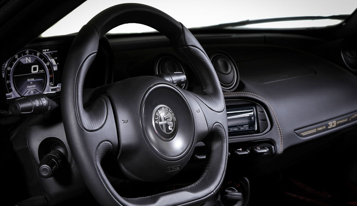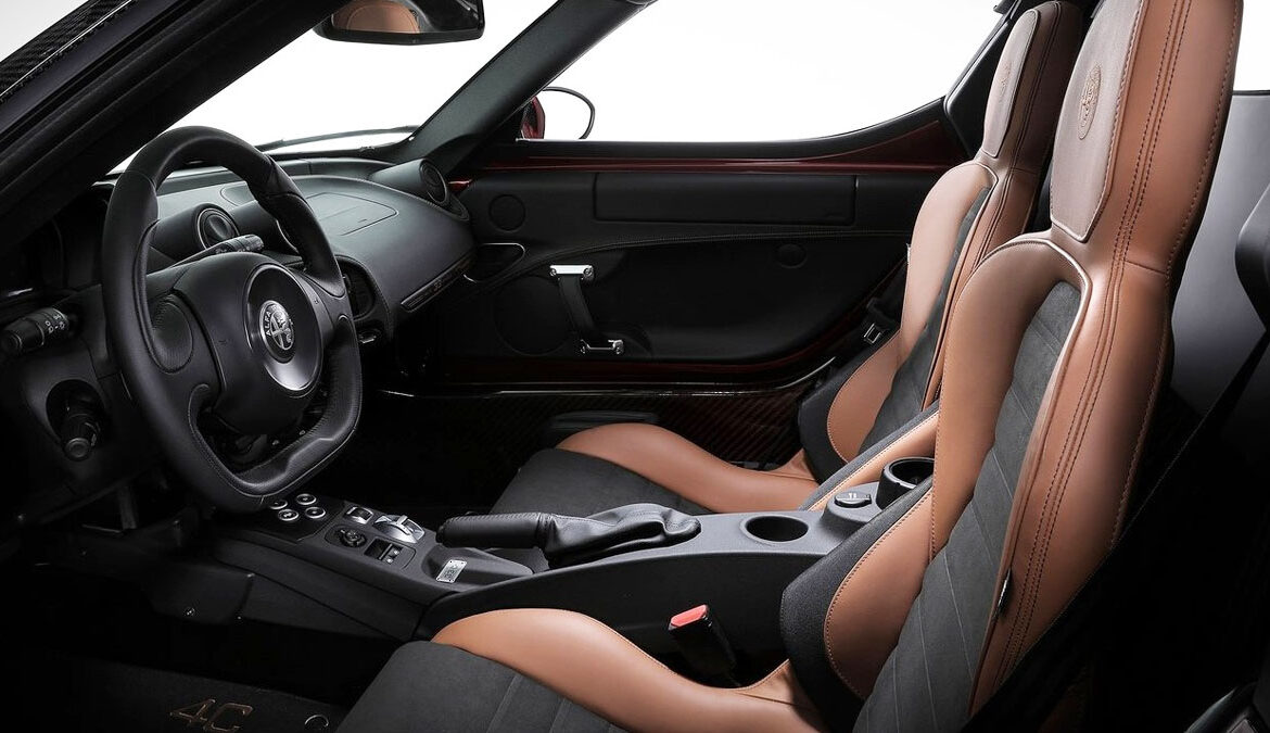 Στο εσωτερικό βρίσκουμε σπορ καθίσματα από ανθρακονήματα και επενδύσεις από συνδυασμό μαύρου Dinamica suede και tobacco δέρματος. Έχουμε επίσης μεταλλικές πλάκες σε ταμπλό, πατήματα των μαρσπιέ και αρίθμηση στην κεντρική κονσόλα. Μαζί με το αυτοκίνητο οι ιδιοκτήτες θα λάβουν επίσης και ένα συλλεκτικό βιβλίο από το Centro Stile που εμπεριέχει τη σχεδιαστική εξέλιξη και την παραγωγική διαδικασία της 4C αλλά και την ιστορία της 33 Stradale.