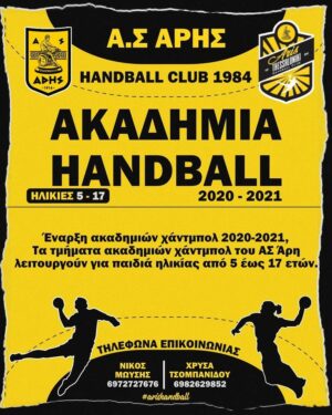 Ο Α.Σ. ΑΡΗΣ και το τμήμα Χάντμπολ ανακοινώνουν την έναρξη εγγραφών των Ακαδημιών του συλλόγου.
