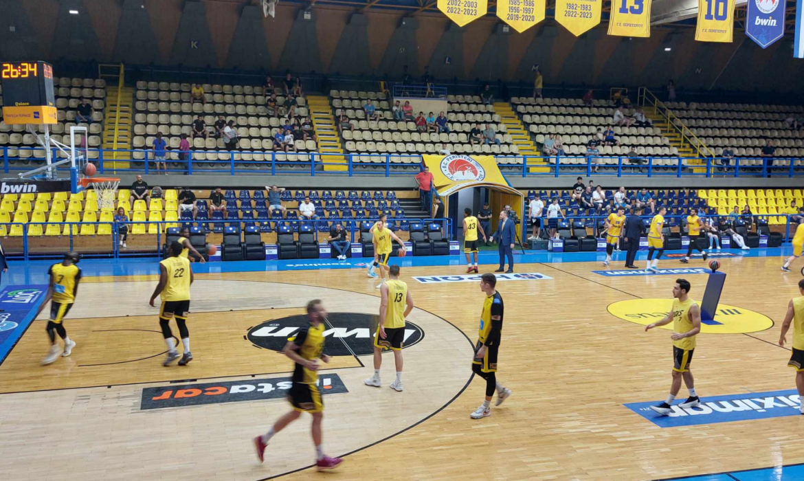 Ο Άρης προετοιμάζεται για τον μικρό τελικό, με τους αθλητές της ομάδας να βγαίνουν στο παρκέ για την προθέρμανση πριν το τζάμπολ.