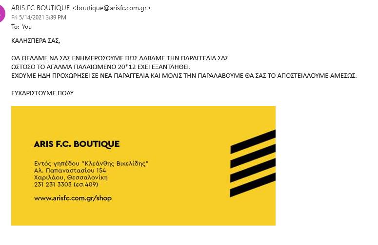Δείτε παρακάτω e-mail το οποίο δημοσίευσε φίλος των κιτρινόμαυρων στα social media: