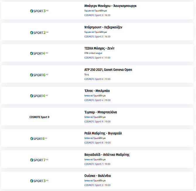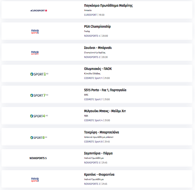 Αρχική/Γενικά/Οι αθλητικές μεταδόσεις της ημέρας Γενικά Οι αθλητικές μεταδόσεις της ημέρας YellowRadio.gr Follow on X Send an email 22 Μαΐου 2021 - 11:57Τελευταία ενημέρωση: 22 Μαΐου 2021 - 11:57 Λιγότερο από ένα λεπτό Facebook X WhatsApp Viber Μοιραστείτε μέσω Ε-mail Οι αθλητικές μεταδόσεις της ημέρας Δείτε το σημερινό πρόγραμμα των αθλητικών τηλεοπτικών μεταδόσεων με τα αθλητικά γεγονότα. ΕτικέτεςCOSMOTE TV NOVA YellowRadio.gr Follow on X Send an email 22 Μαΐου 2021 - 11:57Τελευταία ενημέρωση: 22 Μαΐου 2021 - 11:57 Λιγότερο από ένα λεπτό Facebook X WhatsApp Viber Μοιραστείτε μέσω Ε-mail Κοινοποίηση Facebook X WhatsApp Viber Μοιραστείτε μέσω Ε-mail Εκτύπωση