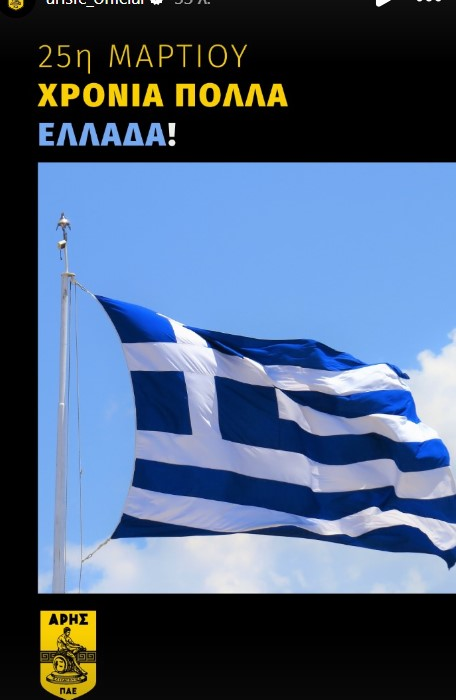 Οι ευχές της ΠΑΕ ΑΡΗΣ για την επέτειο της 25ης Μαρτίου (pic)