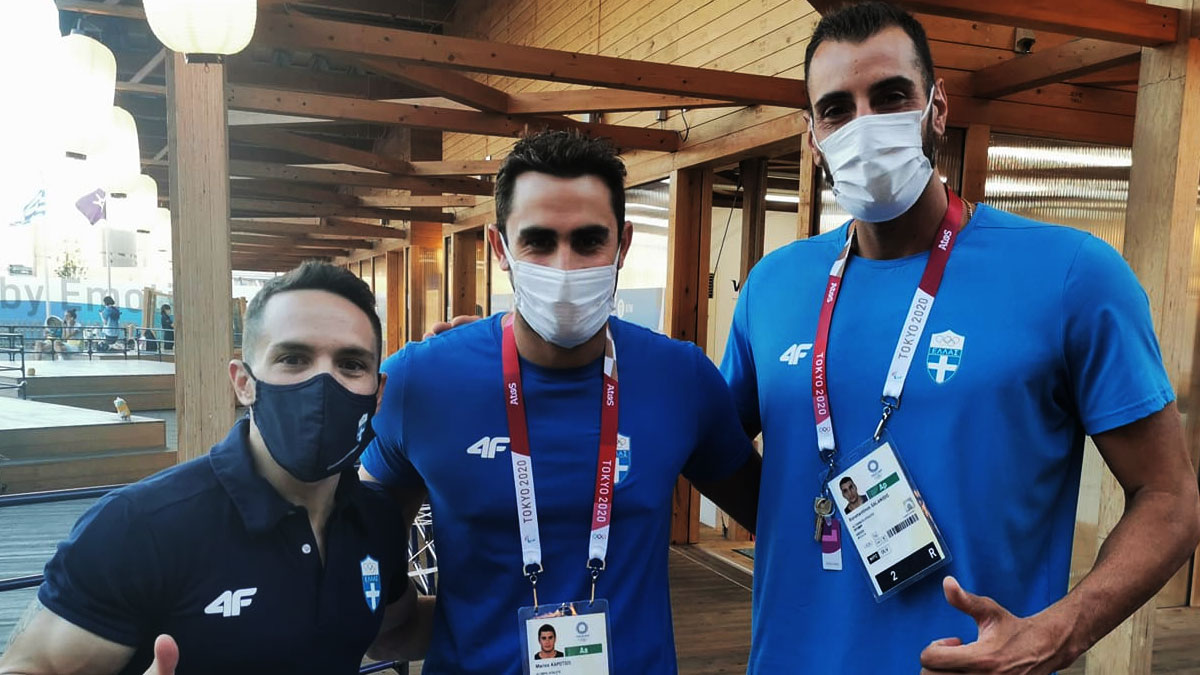 Οι τρεις αθλητές έβγαλαν φωτογραφίες μαζί, με τον 30χρονο πρωταθλητή των κρίκων να στέλνει τις ευχές του για νίκη και πρόκριση σε όλη την ομάδα πόλο, ενόψει του αυριανού κρίσιμου αγώνα.