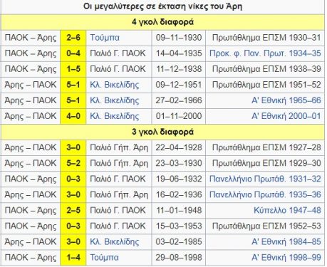 Οι μεγαλύτερες σε έκταση νίκες του Άρη επί του ΠΑΟΚ
