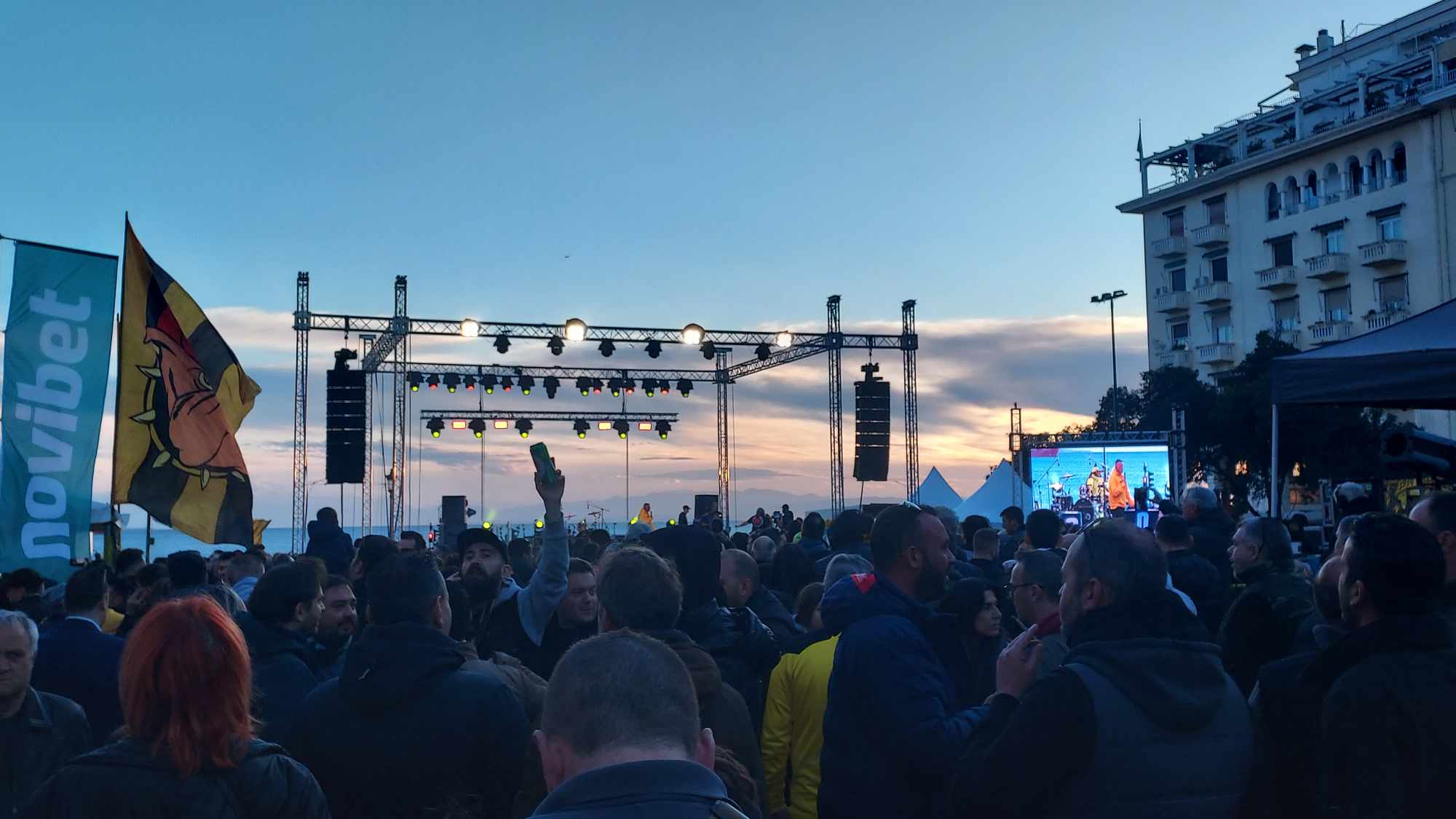 Η ομάδα μπάσκετ του Άρη βρέθηκε στη Πλατεία Αριστοτέλους, με τους παίκτες να πραγματοποιούν ορισμένες δηλώσεις προς τον κόσμο.