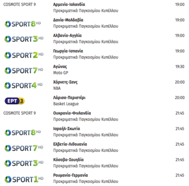 Αρχική/Γενικά/Οι σημερινές αθλητικές τηλεοπτικές μεταδόσεις Γενικά Οι σημερινές αθλητικές τηλεοπτικές μεταδόσεις YellowRadio.gr Follow on X Send an email 28 Μαρτίου 2021 - 12:02Τελευταία ενημέρωση: 28 Μαρτίου 2021 - 11:26 Λιγότερο από ένα λεπτό Facebook X WhatsApp Viber Μοιραστείτε μέσω Ε-mail Παναθηναϊκός, ΑΕΚ: Κοινή πρόταση για την κεντρική τηλεοπτική διαχείριση Δείτε το σημερινό πρόγραμμα των τηλεοπτικών μεταδόσεων με τα αθλητικά γεγονότα. ΕτικέτεςCOSMOTE TV ΑΓΩΝΕΣ ΑΘΛΗΤΙΚΕΣ ΜΕΤΑΔΟΣΕΙΣ ΑΘΛΗΤΙΚΟΙ ΑΓΩΝΕΣ ΕΡΤ3 YellowRadio.gr Follow on X Send an email 28 Μαρτίου 2021 - 12:02Τελευταία ενημέρωση: 28 Μαρτίου 2021 - 11:26 Λιγότερο από ένα λεπτό Facebook X WhatsApp Viber Μοιραστείτε μέσω Ε-mail Κοινοποίηση Facebook X WhatsApp Viber Μοιραστείτε μέσω Ε-mail Εκτύπωση