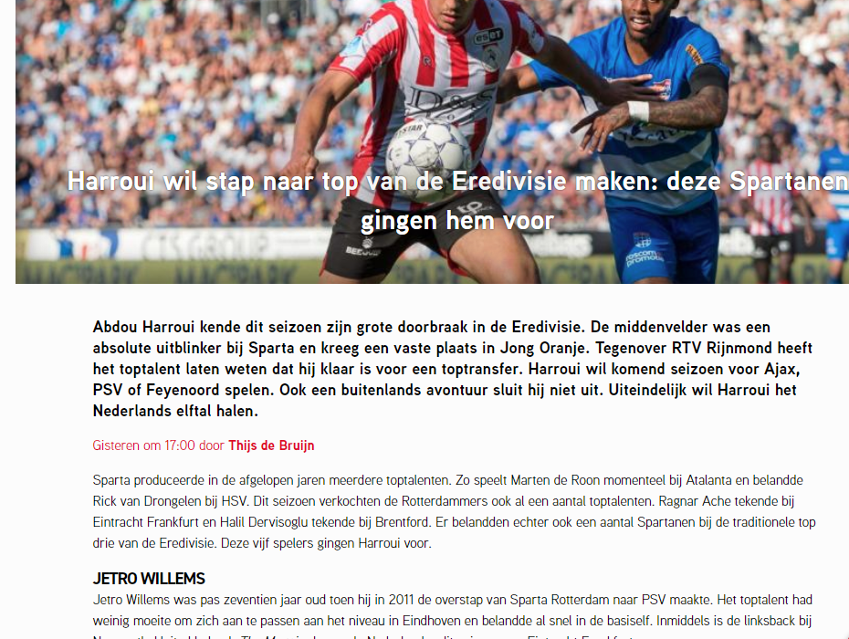 Το elfvoetbal.nl κάνει λόγω για παίκτες που έχουν περάσει από την Σπάρτα Ρότερνταμ και έκαναν το “βήμα παραπάνω” στις καριέρες τους.