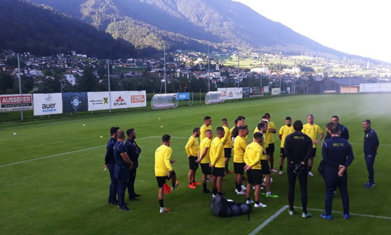 Ο Γερμανός τεχνικός απηύθυνε ομιλία προς τους ποδοσφαιριστές της ομάδας, ενώ αμέσως μετά ξεκίνησε η προπόνηση στο Φούλπνες, εκεί που διανυκτερεύει ο Άρης.
