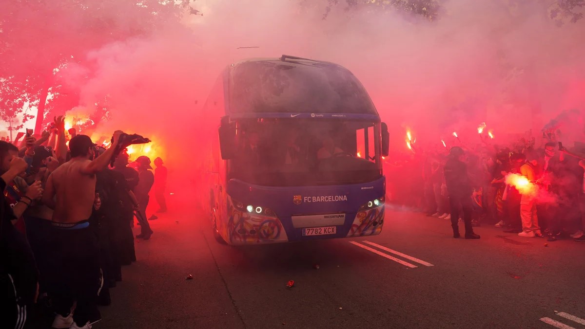 Η κακή βραδιά από την αρχή φάνηκε για την Μπαρτσελόνα, καθώς οπαδοί της επιτέθηκαν στο πούλμαν της ομάδας, επειδή το μπέρδεψαν με αυτό της Παρί Σεν Ζερμέν!