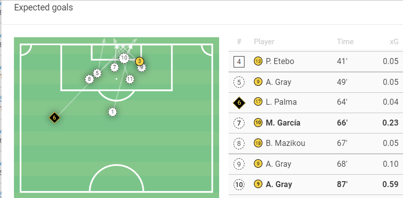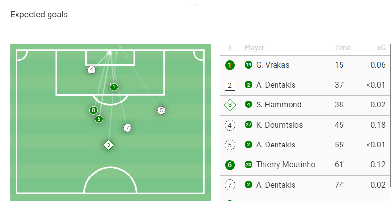 Παρακάτω μπορείτε να δείτε τον πίνακα με τα expected goals της κάθε ομάδας, ενώ στα δεξιά της εικόνας βλέπετε απόσπασμα από την «αξία» της κάθε ευκαιρίας.