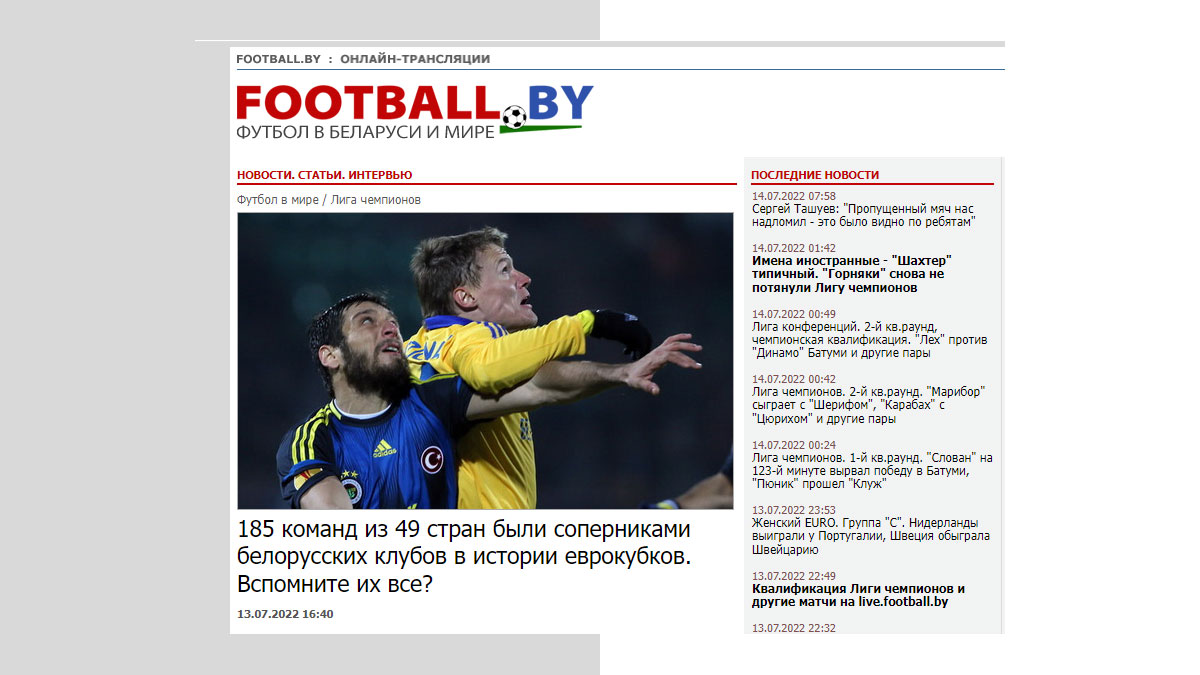 Η κορυφαία ιστοσελίδα της Λευκορωσίας, football.by αναφέρθηκε στα όσα φέρνουν τα φετινά Ευρωπαϊκά παιχνίδια για την χώρα και την ιστορία της στις διεθνείς διοργανώσεις.