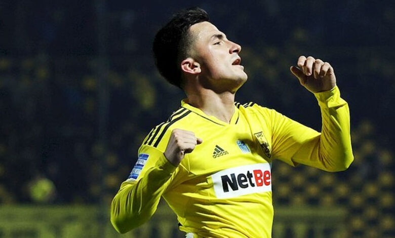 Ο Γκαρθία “γράφει” το 1-0 για τον Άρη και δείχνει την φανέλα με το όνομα του Άλκη!