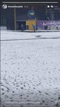 Στην Θεσσαλονίκη συνεχίζεται η χιονόπτωση τις τελευταίες ώρες και το γήπεδο των κιτρινόμαυρων έχει ντυθεί στα λευκά.