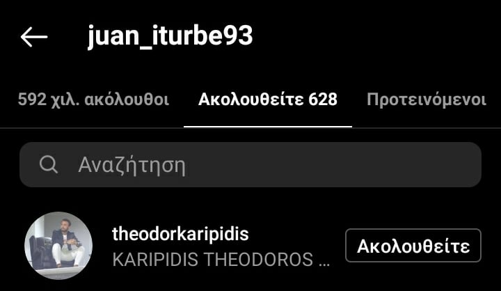 Σήμερα που ο Άρης και οι φίλαθλοί του περιμένουν τα νέα, ο Χουάν Ιτούρμπε ακολούθησε στο instagram τον Θεόδωρο Καρυπίδη, παραμονή του αποτελέσματός του.