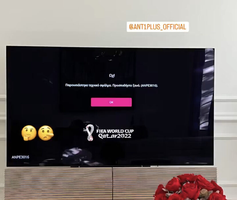 Η συνδρομητική πλατφόρμα του ΑΝΤ1, αντιμετωπίζει πολλά τεχνικά προβλήματα από την έναρξη του Μουντιάλ, με τον ισχυρό άνδρα του Άρη να…αναρωτιέται.