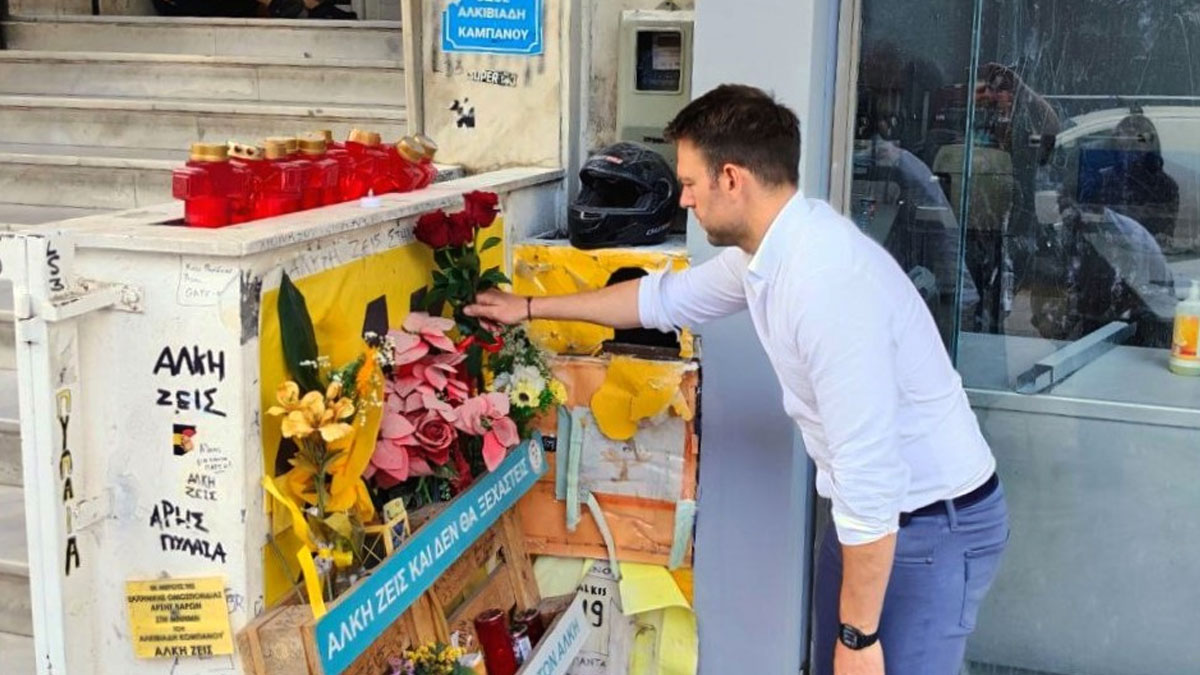 Ο Κασσελάκης άφησε λουλούδια στο σημείο που δολοφονήθηκε ο Άλκης