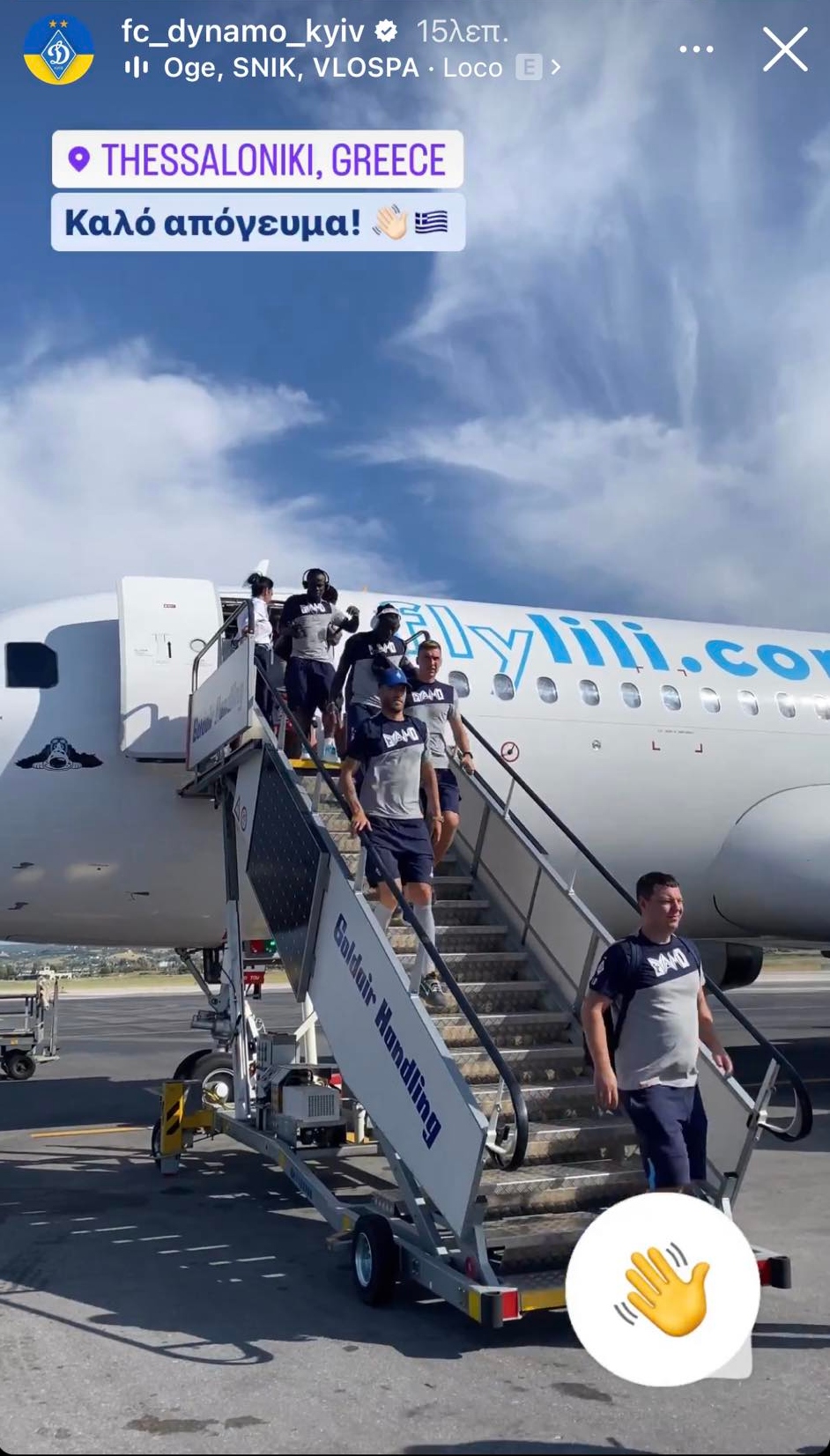Οι ουκρανοί δημοσίευσαν φωτογραφία στα social media που οι ποδοσφαιριστές της ομάδας κατεβαίνουν από το αεροπλάνο και γράφουν στα Ελληνικά : «Καλό απόγευμα».