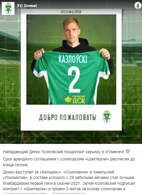 Η Γκόμελ προχώρησε σε μία μεταγραφή για την ενίσχυση της επιθετικής της γραμμής, μετά την βαριά ήττα από την Μινσκ και πριν τους αγώνες με τον Άρη για τα προκριματικά του Europa Conference League.