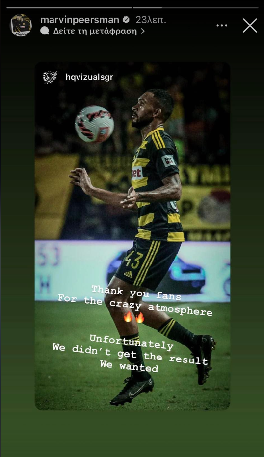 Η ανάρτηση του Μάρβιν Πίρσμαν μετά τον αποκλεισμό του Άρη από τη Μακάμπι.