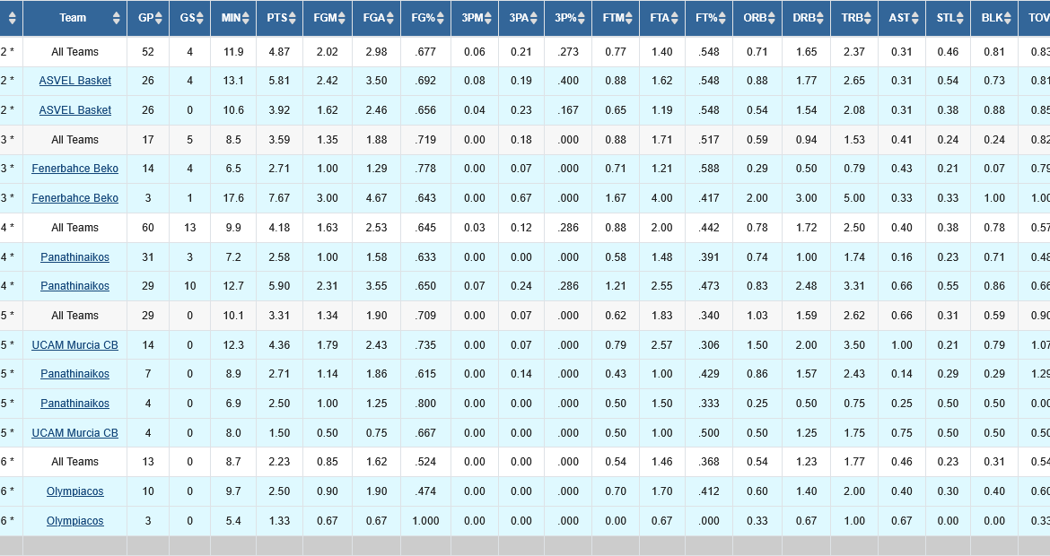 ΤΑ ΣΤΑΤΙΣΤΙΚΑ ΤΟΥ ΣΤΗΝ G-LEAGUE