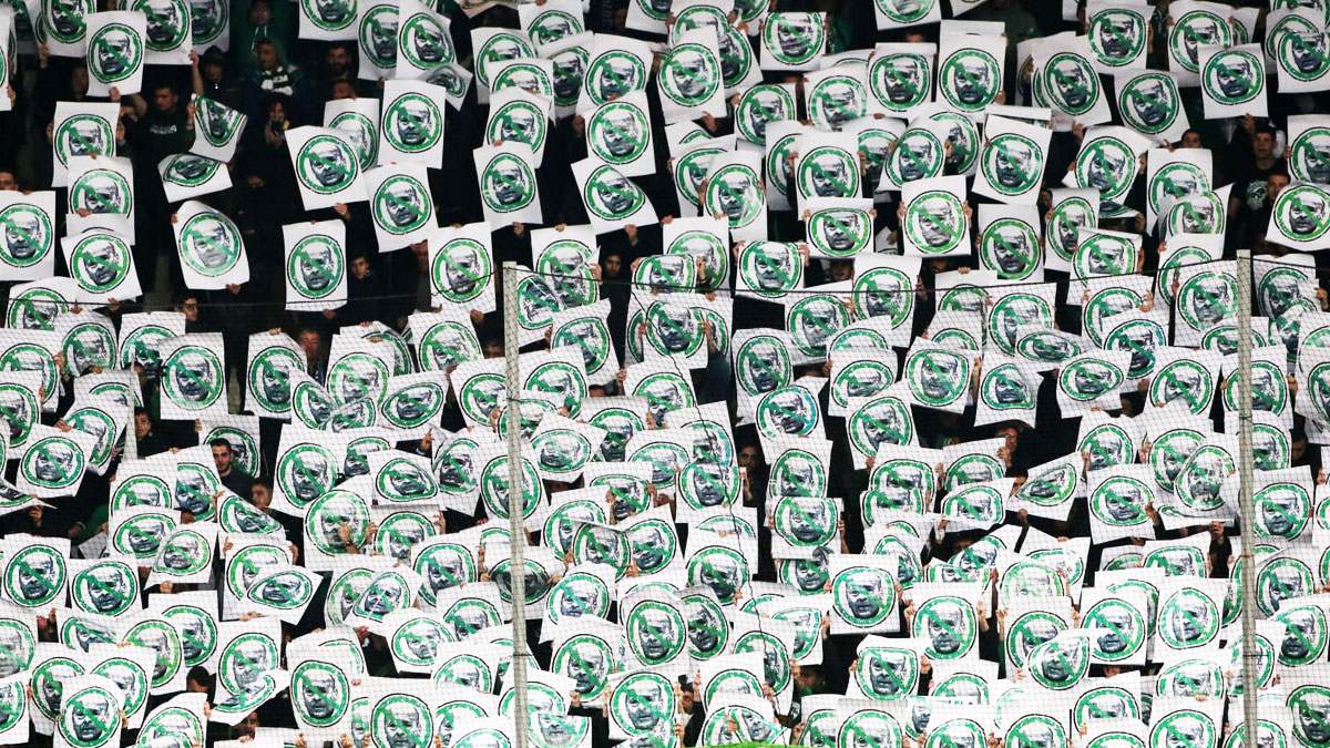 Εκεί, οι οργανωμένοι οπαδοί της ομάδας “ανέβασαν” υβριστικά πανό κατά του Γιάννη Αλαφούζου, ενώ σήκωσαν και καρτελάκια που έφεραν το πρόσωπό του, έχοντας το σήμα του απαγορευτικού, για τη συνέχιση της δράσης του στην “πράσινη” ΠΑΕ.