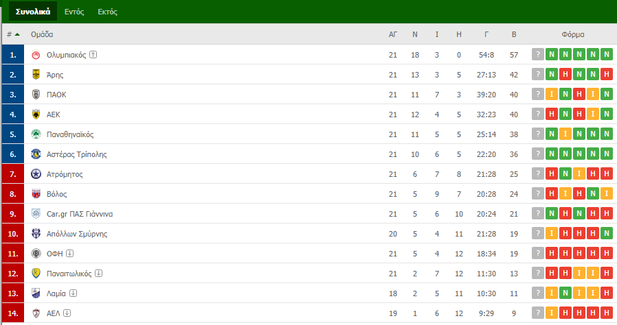 Παναιτωλικός: Ήττα (1-2)από τον ΠΑΣ Γιάννινα, Βαθμολογία