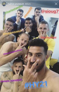 Στα αποδυτήρια μετά την λήξη του αγώνα με την Ξάνθη μερίδα ποδοσφαιριστών πανηγύρισαν αλά Γιουνές