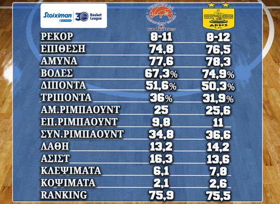 Ο Άρης, έχοντας στις τάξεις του τον Τζέιμς Κέλι, θα αντιμετωπίσει το Σάββατο το Περιστέρι. Παρακάτω, δείτε τα στατιστικά των δύο ομάδων, μέσα από γράφημα που “ανέβασε” ο ΕΣΑΚΕ.