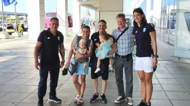 Μαζί με τον Λευτέρη Πετρούνια αναχώρησε ο προπονητής του, Δημήτρης Ράφτης και η φυσικοθεραπεύτρια, Ιβάνα Τζούριτς, ενώ τον αποχαιρέτησαν η σύζυγός του, Βασιλική Μιλλούση μαζί με τις δύο κόρες του και ο πρόεδρος της ΕΓΟ, Αθανάσιος Σταθόπουλος.