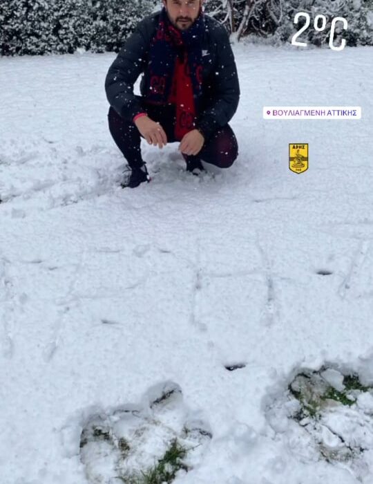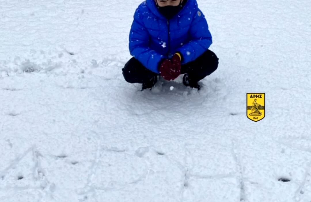 «Τίποτα δε μας σταματάει από το να παίξουμε ποδόσφαιρο», είπε ο μικρός στον πατέρα του, κάνοντας εξαιρετικό… κοντρόλ στο χιόνι και λίγο αργότερα έγραψε στο χιόνι τη λέξη Άρης!