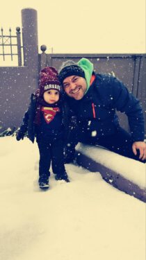 Βγήκε με τους γονείς ο μικρός Παναγιώτης-Ραφαήλ του για να απολαύσει όπως κάθε παιδάκι το χιόνι και μάλιστα πόζαρε όρθιος για να βγάλει φωτογραφία.