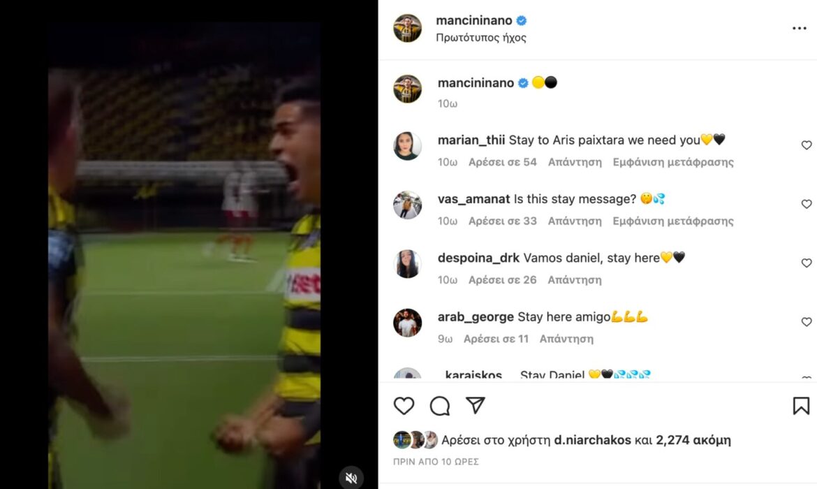 Αποχαιρετιστήρια ανάρτηση ή μήνυμα παραμονής από τον Ντάνιελ Μαντσίνι; Ο Αργεντινός μεσοεπιθετικός του Άρη ανέβασε φωτογραφίες με το γκολ του από το ματς με τον Ολυμπιακό και τα μηνύματα αγάπης που έλαβε για να μείνει στην ομάδα ήταν δεκάδες.