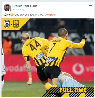 “Μια πόλη, ένας Θεός” ήταν το μήνυμα του Κριστιάν Πορτίγια που έχει πάντα τον Άρη στην καρδιά του και δεν το κρύβει!