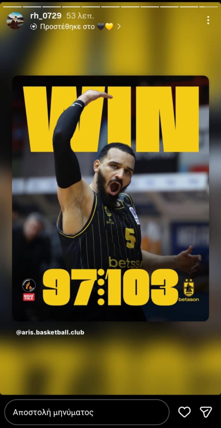 “Ποστάρισμα” Σιάο για τη νέα νίκη του Άρη στην Πάτρα (pic)