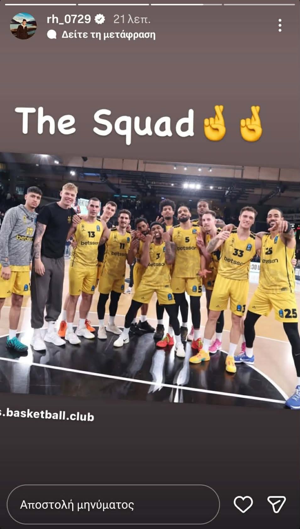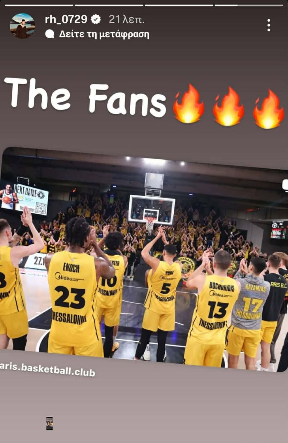 Ο Ρίτσαρντ Σιάο μέσω του προσωπικού του λογαριασμού στο ίνσταγκραμ έδωσε συγχαρητήρια σε ομάδα και κόσμο για την παρουσία τους στην Inselpark Arena.