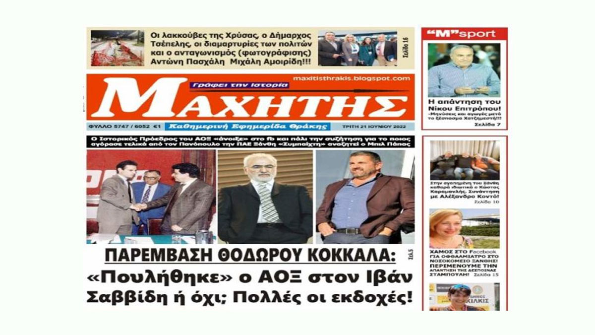 «Πουλήθηκε ο ΑΟΞ στον Ιβάν Σαββίδη ή όχι; Πολλές οι εκδοχές» Η παρέμβαση πρώην προέδρου του ΑΟΞ και το πρωτοσέλιδο στη Ξάνθη