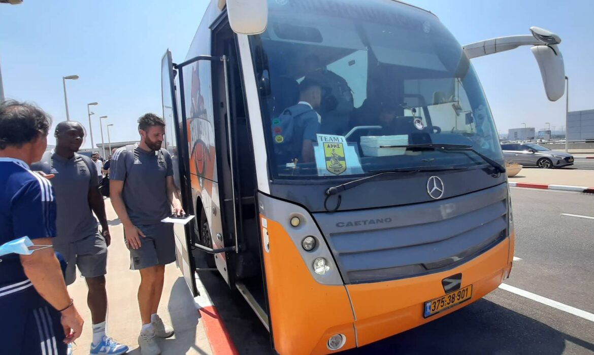 Η Μακάμπι Τελ Αβίβ, έστειλε πούλμαν στο αεροδρόμιο με σκοπό να παραλάβει τους φίλους της ομάδας του Άρη.