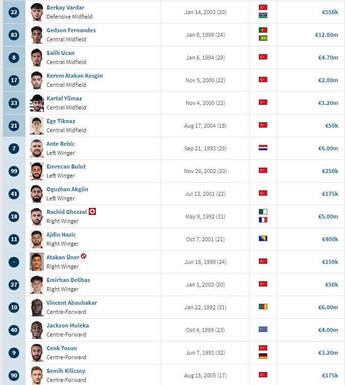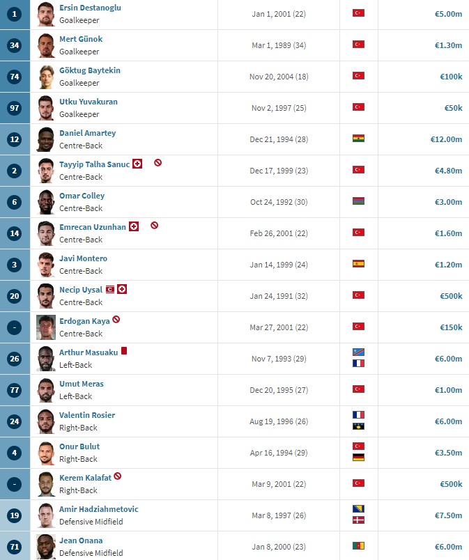 Ο πολύπειρος Σενιόλ Γκιουνές είδε την ομάδα του να ενισχύεται σημαντικά σχεδόν σε κάθε γραμμή. Ντάνιελ Αμαρτέι (Λέστερ) και Άρτουρ Μαζουάκου (Γουέστ Χαμ) στην άμυνα, Ζαν Ονανά (Λενς) στα χαφ και Άντε Ρέμπιτς (Μίλαν) στη μεσοεπιθετική γραμμή.